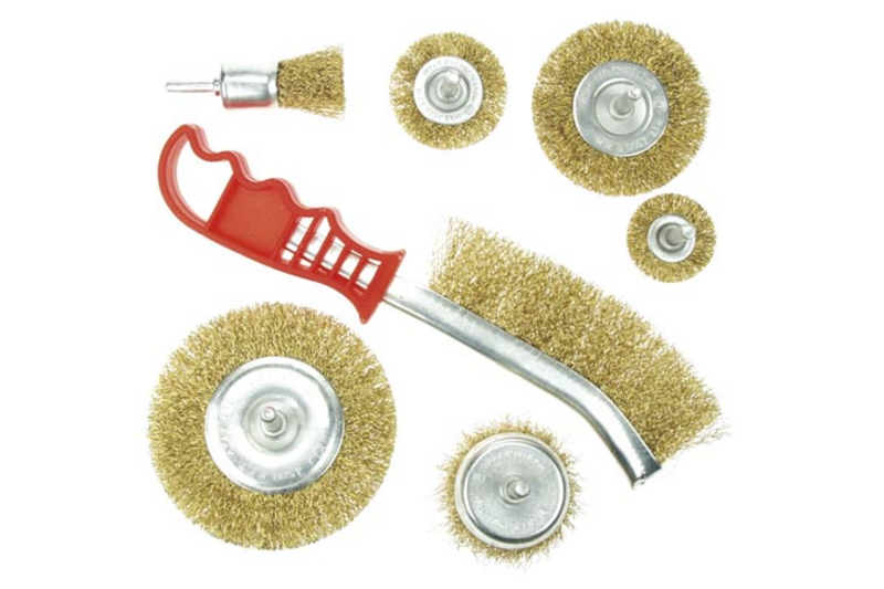 - 4 ronde borstels, schacht 6.35mm: 38mm, 50mm, 75mm, 100mm (max. toegelaten snelheid 4500rpm)